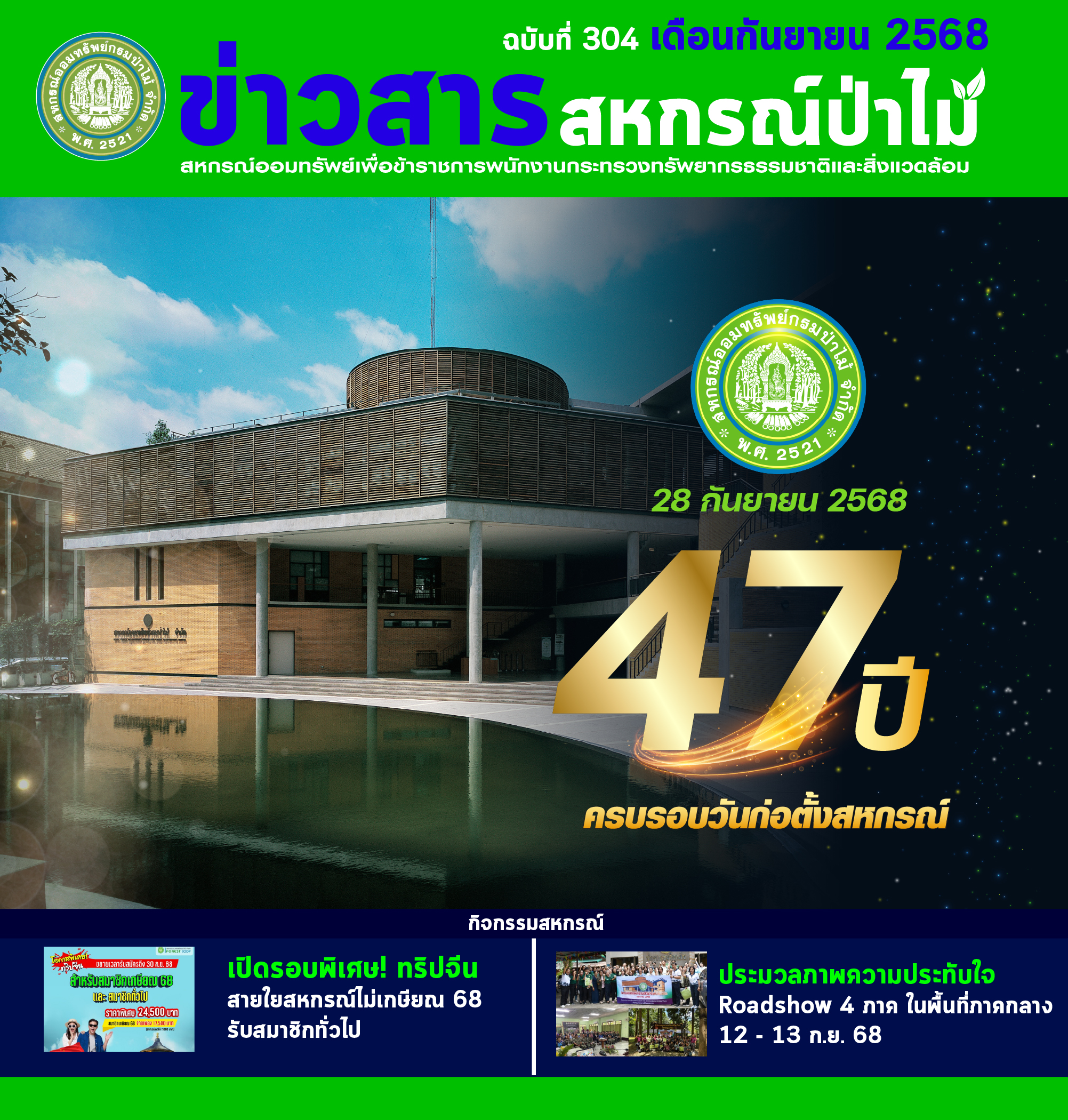 สวัสดีครับ...ท่านสมาชิกสหกรณ์ออมทรัพย์กรมป่าไม้ จำกัด ทุกท่าน ในโอกาสวันคล้ายวันก่อตั้งสหกรณ์ออมทรัพย์กรมป่าไม้ จำกัด ครบรอบ 47 ปี วันที่ 28 กันยายน 2568 จากการดำเนินงานตั้งแต่ปี พ.ศ. 2521 จนถึงปัจจุบัน ณ วันที่ 31 สิงหาคม 2568 มีทุน ดำเนินการ จำนวน 25,637 ล้านบาท มีสมาชิก 13,185 คน และสมาชิกสมทบ 18,634 คน รวม 31,819 คน อ่านต่อคลิ๊ก