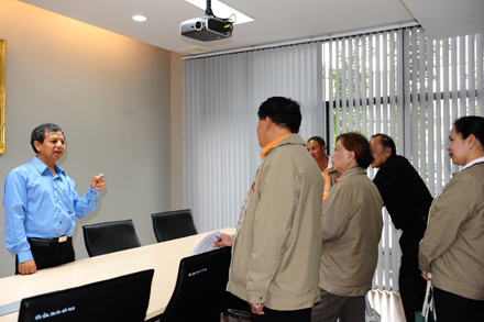 รองประธานกรรมการ ให้การต้อนรับ นายวิชิต สนธิวณิช ผู้จัดการ บรรยายสรุปภาพรวมขององค์กร