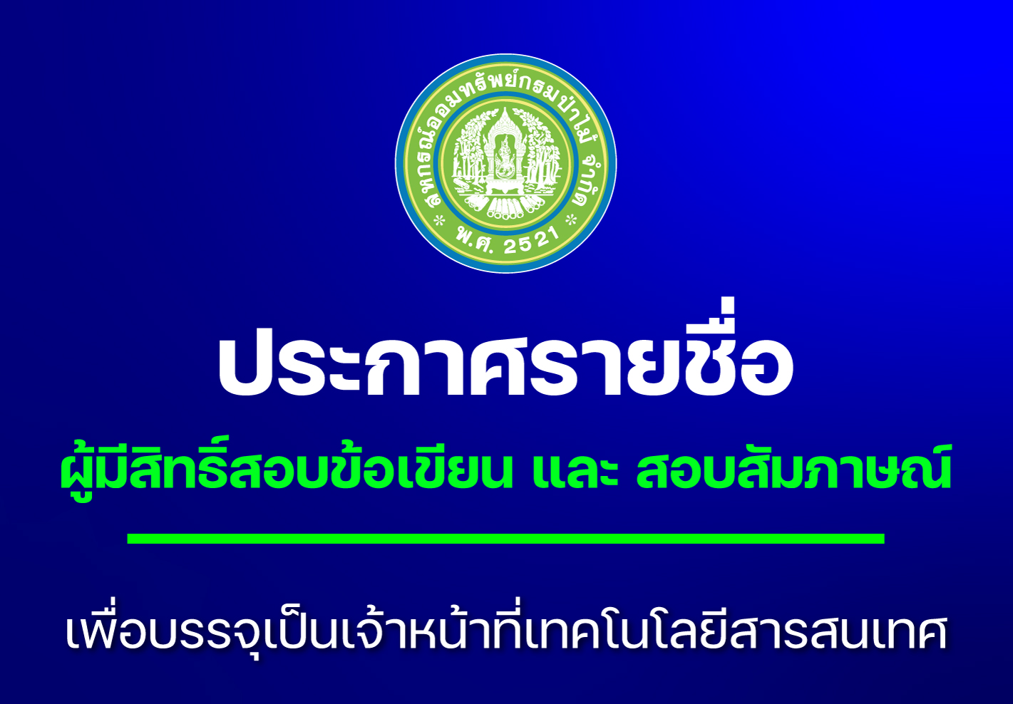 ประกาศรายชื่อผู้มีสิทธิ์สอบข้อเขียนและสัมภาษณ์ เพื่อบรรจุแต่งตั้งเป็นเจ้าหน้าที่เทคโนโลยีสารสนเทศ