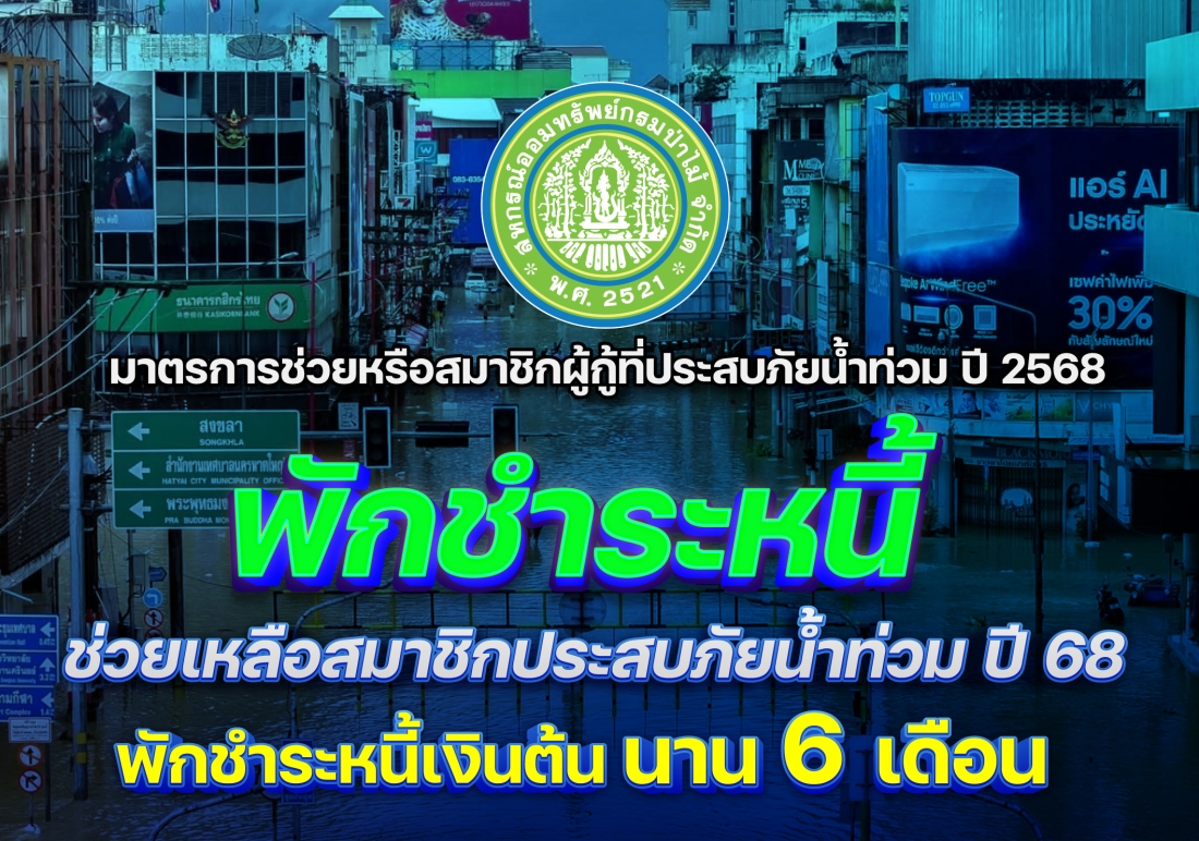 สหกรณ์พักชำระหนี้ ช่วยเหลือสมาชิกที่ได้รับผลกระทบจากสถานการณ์น้ำท่วม ปี 68