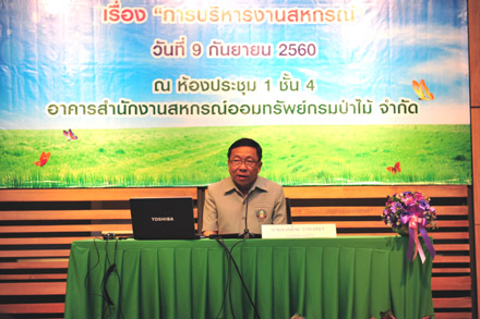 นายจงคล้าย วรพงศธร รองอธิบดีกรมป่าไม้ กล่าวเปิดโครงการสัมมนาเรื่องการบริหารงานสหกรณ์