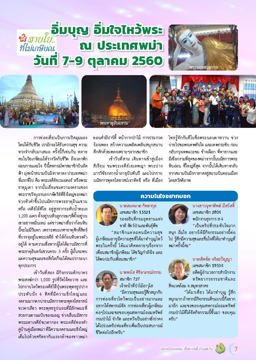 สายใยไม่เกษียณปี 2560 อิ่มบุญอิ่มใจ ณ ประเทศพม่า 7-9 ตุลาคม 2560