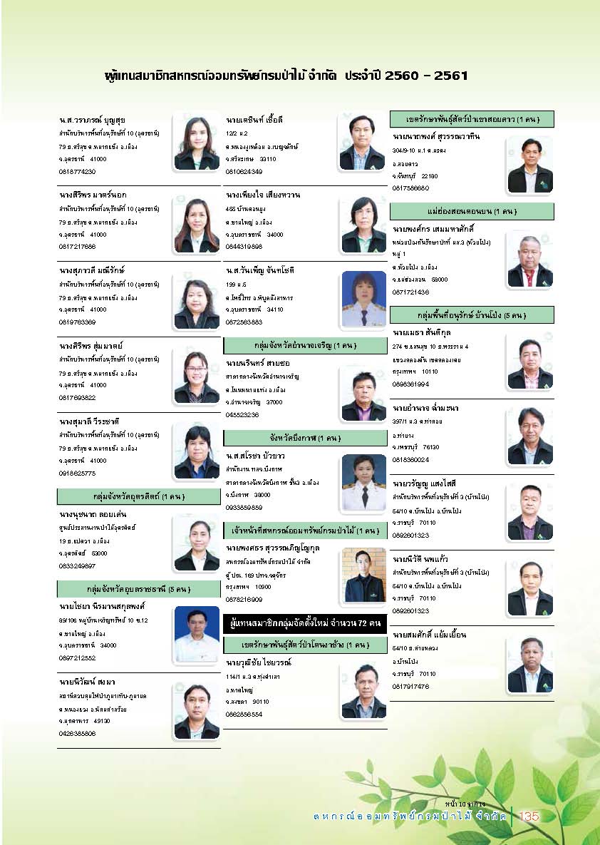 รายชื่อผู้แทนสมาชิก ประจำปี 2560 - 2561