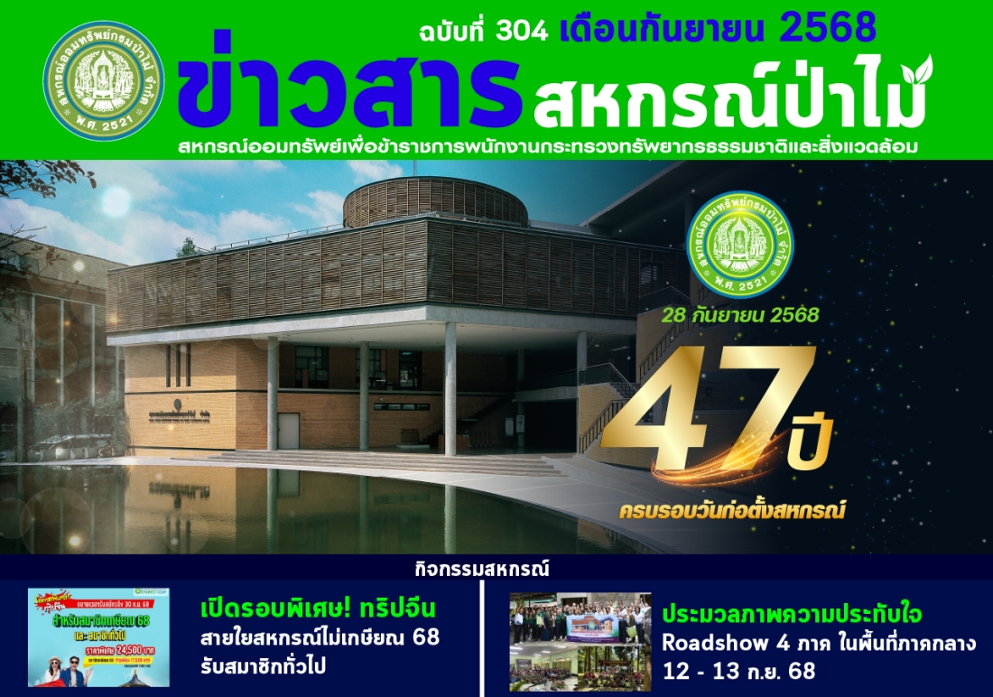 สวัสดีครับ...ท่านสมาชิกสหกรณ์ออมทรัพย์กรมป่าไม้ จำกัด ทุกท่าน ในโอกาสวันคล้ายวันก่อตั้งสหกรณ์ออมทรัพย์กรมป่าไม้ จำกัด ครบรอบ 47 ปี วันที่ 28 กันยายน 2568 จากการดำเนินงานตั้งแต่ปี พ.ศ. 2521 จนถึงปัจจุบัน ณ วันที่ 31 สิงหาคม 2568 มีทุน ดำเนินการ จำนวน 25,637 ล้านบาท มีสมาชิก 13,185 คน และสมาชิกสมทบ 18,634 คน รวม 31,819 คน อ่านต่อคลิ๊ก