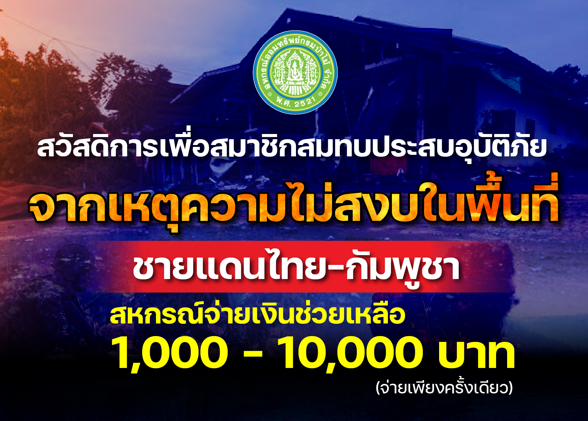 ช่วยเหลือสมาชิกสมทบประสบอุบัติภัย จากเหตุความไม่สงบในพื้นที่ชายแดนไทย-กัมพูชา หมดเขต 29 ธ.ค. 68