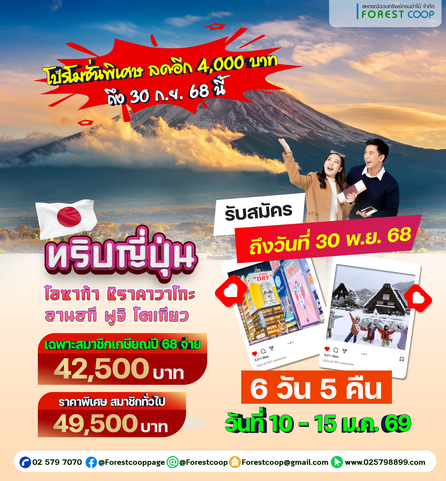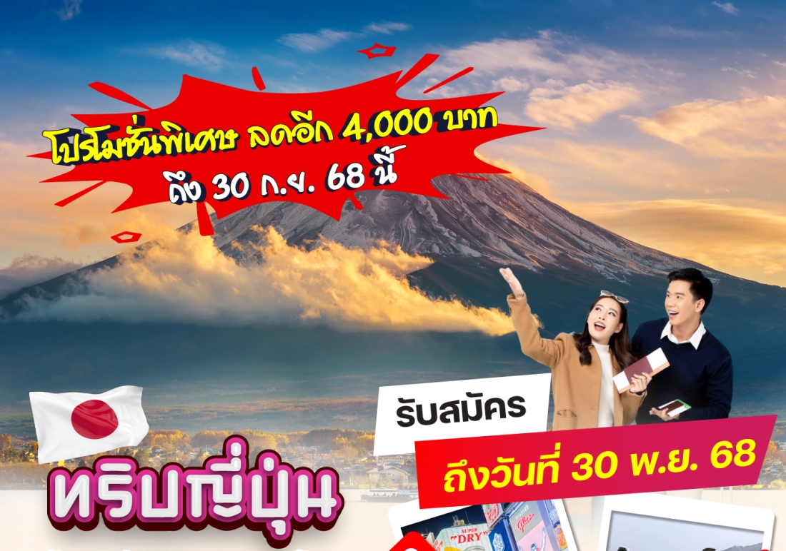 โปรโมชั่นพิเศษ ลดเพิ่มอีก 4,000 บาท ประเทศญี่ปุ่น 6 วัน 5 คืน ถึง 30 ก.ย. 68 นี้!