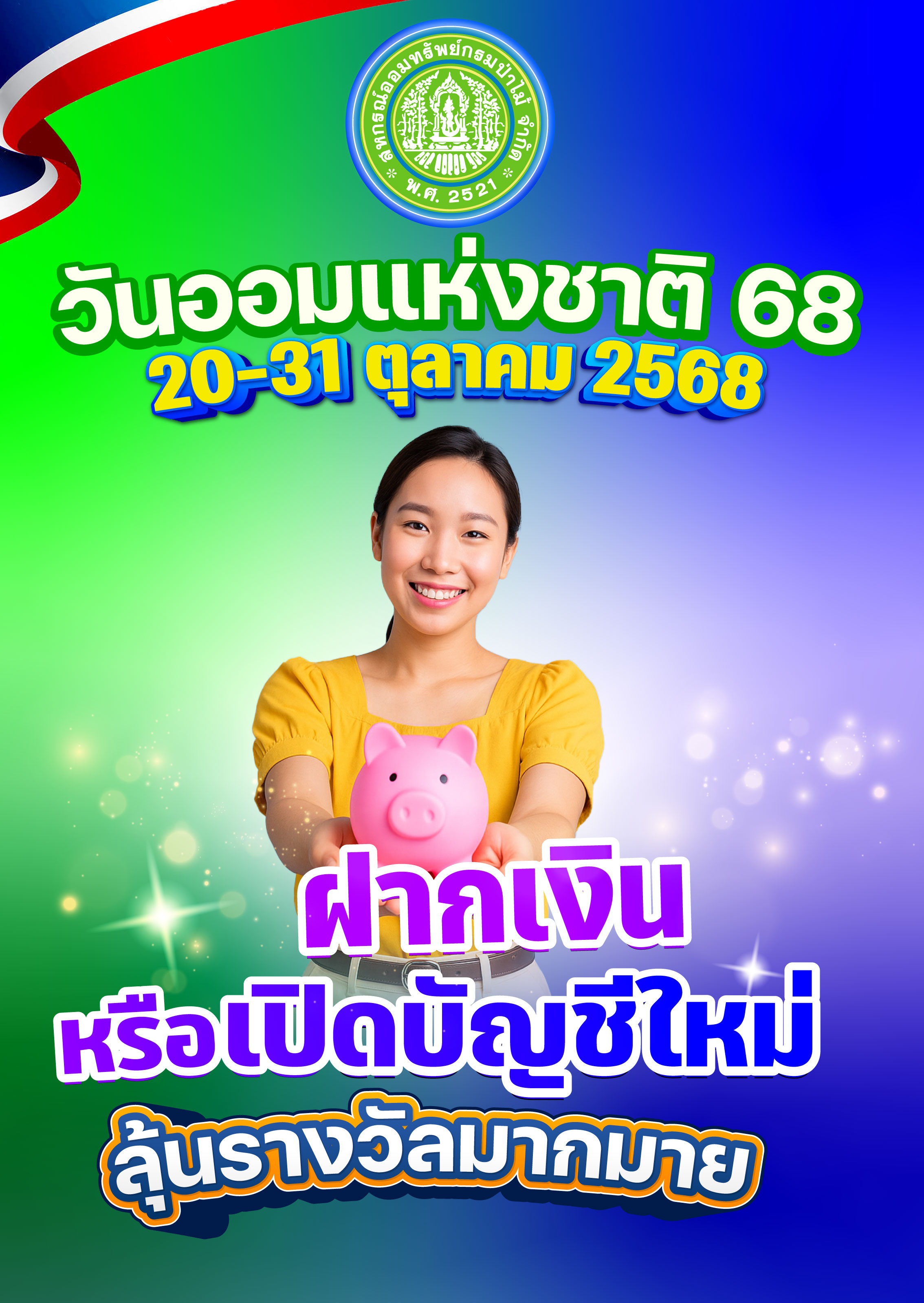 สหกรณ์ออมทรัพย์กรมป่าไม้ จำกัด ขอเชิญชวนสมาชิกทุกท่านมาร่วมเป็นส่วนหนึ่งของสังคมแห่งการออม โดยสหกรณ์ได้จัดกิจกรรมวันออมแห่งชาติ 68 ออมเงินกับสหกรณ์ ลุ้นรับรางวัลมากมาย ในระหว่างวันที่ 20-31 ต.ค.68 โดยในปีนี้พิเศษกว่าเดิมกับการเปิดตัวบัญชีออมทรัพย์ประเภทใหม่ บัญชีออมทรัพย์ “มหามงคล” เป็นบัญชีอิเล็กทรอนิกส์ที่ไม่มีสมุดคู่ฝาก นอกจากลวดลายและเลขมงคลของบัญชี ยังให้ดอกเบี้ยสูงอีกด้วย อ่านรายละเอียดเพิ่มเติม