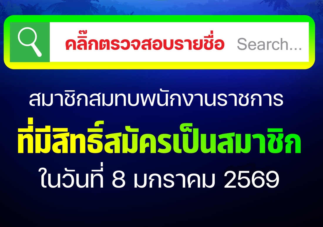 >> คลิ๊กที่นี่ เพื่อตรวจสอบรายชื่อสมาชิกสมทบที่เป็นพนักงานราชการ ที่มีสิทธิ์สมัครเป็นสมาชิก (สำหรับผู้ที่เป็นสมาชิกสมทบมาแล้ว 10 ปีขึ้นไป)