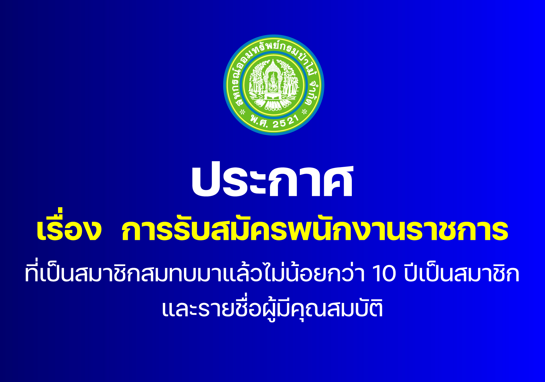อาศัยอำนาจตามข้อบังคับสหกรณ์ออมทรัพย์กรมป่าไม้ จำกัด พ.ศ. 2568 ข้อ 32 (3) ค. กำหนดว่า ผู้สมัครเป็นสมาชิกต้องมีคุณสมบัติเป็นพนักงานราชการสังกัดกรมป่าไม้ หรือกรมอุทยานแห่งชาติ สัตว์ป่า และพันธุ์พืช หรือกรมทรัพยากรทางทะเลและชายฝั่ง หรือสำนักงานปลัดกระทรวงทรัพยากรธรรมชาติและสิ่งแวดล้อม หรือส่วนราชการอื่นในสังกัดกระทรวงทรัพยากรธรรมชาติและสิ่งแวดล้อม ซึ่งส่วนราชการจ้างให้เป็นพนักงานราชการเพื่อปฏิบัติงานโดยมีการกำหนดระยะเวลาการจ้างงานไว้ในสัญญาจ้าง และเป็นสมาชิกสมทบมาแล้วไม่น้อยกว่า 10 ปีเป็นสมาชิก คณะกรรมการดำเนินการ ชุดที่ 48 ในคราวประชุม ครั้งที่ 15 เมื่อวันที่ 28 พฤศจิกายน 2568 พิจารณาแล้วมีมติเห็นชอบให้ออกประกาศสหกรณ์ออมทรัพย์กรมป่าไม้ จำกัด เรื่อง การรับสมัครพนักงานราชการที่เป็นสมาชิกสมทบมาแล้วไม่น้อยกว่า 10 ปีเป็นสมาชิก ดังนี้