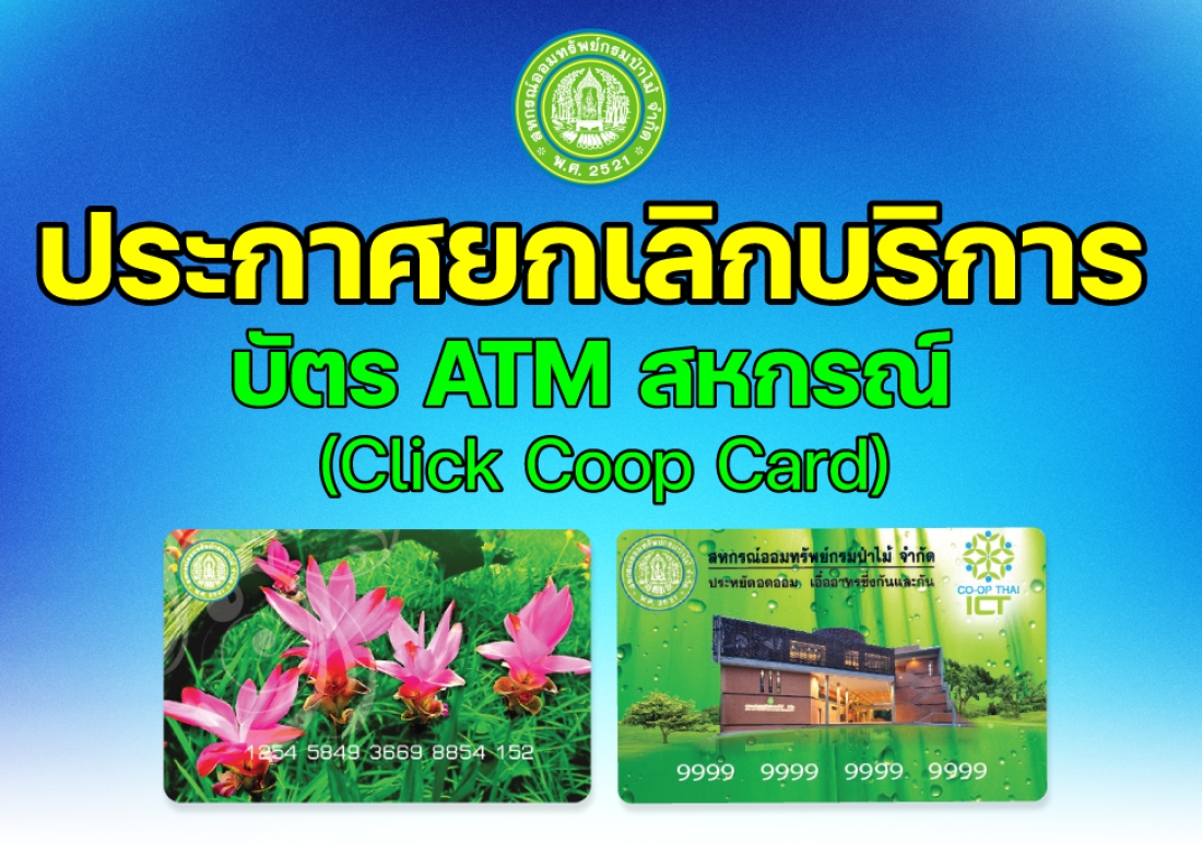 ประกาศยกเลิกบริการบัตร ATM สหกรณ์ Click Coop Card