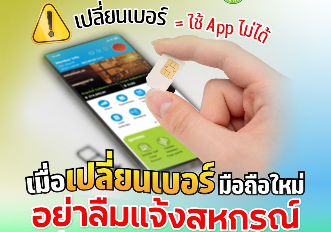 เปลี่ยนเบอร์ = ใช้ App ไม่ได้ ต้องแจ้งupdate กับสหกรณ์ก่อน