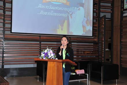 นางสาวปฐมพร ประกอบปราณ พิธีกรดำเนินรายการ โครงการฝึกอบรมหลักสูตรเพื่อคนสหกรณ์รุ่นใหม่