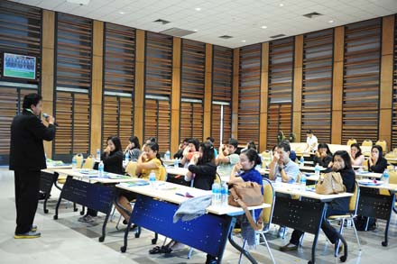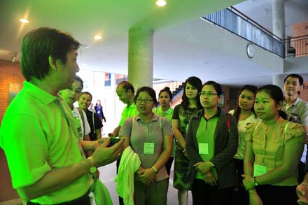 นายสุเทพ บัวจันทร์ ประธานคณะกรรมการศึกษาและประชาสัมพันธ์ เตรียมความพร้อมและทำกิจกรรมกับผู้เข้าร่วมฝึกอบรม ก่อนการบรรยายของวิทยากร