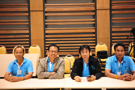 ภาพจากซ้าย นายแปลก พิมลไทย, นายสุภาพ คำแฝง กรรมการ นายประสิทธิ์ นิ่มนวลฉวี กรรมการทำหน้าที่ผู้จัดการ นายสุเทพ บัวจันทร์ กรรมการ ร่วมต้อนรับคณะฝึกอบรม