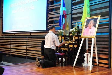 นายสิทธิชัย อึ๊งภากรณ์ ประธานกรรมการดำเนินการสหกรณ์ออมทรัพย์กรมป่าไม้ จำกัด จุดธูปเทียนบูชาพระรัตนตรัย