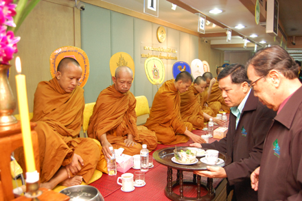 โดยช่วงเช้าจัดให้มีการทำบุญเลี้ยงอาหารพระภิกษุ จำนวน 9 รูป