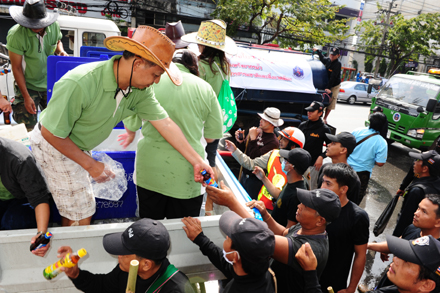 แจกเครื่องดื่มให้เจ้าหน้าที่กรมป่าไม้ - กรมอุทยานแห่งชาติ ฯ